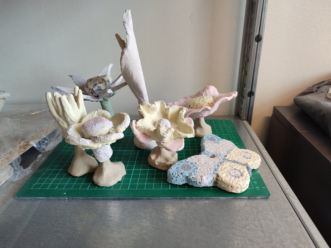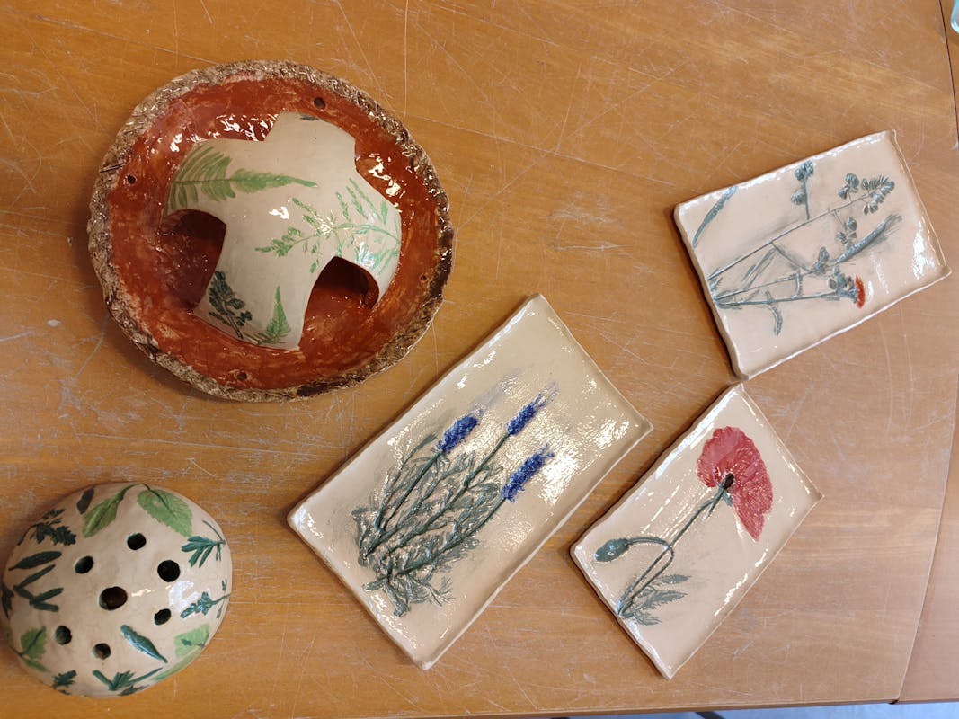 Workshop Natuur& klei. Je maakt afdrukken met bladeren, bloemen en stempels in de klei of ter decoratie op je werkstuk. Maak bijv. een bloem, vlinder, drinkbakjes voor dieren. Vanaf 6-88 jaar. Het is idee van open atelier waar je alleen of samen voor kunt aanmelden.