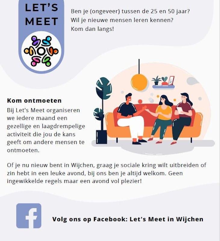 Iedere derde vrijdag van de maand organiseren wij een avond bij wijkcentrum OZO. Kom gezellig langs en ontmoet nieuwe mensen! www.letsmeetwijchen.nl/... Lees meer