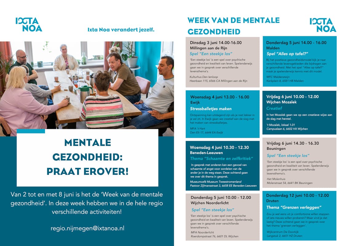 Van 2 t/m 8 juni is het de week van de mentale gezondheid. Ook in Wijchen Noorderlicht besteden we hier aandacht aan! We gaan het spel "Een steekje los" spelen.