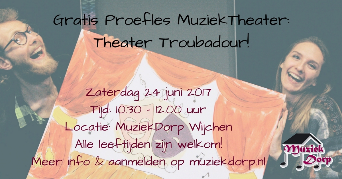 Zaterdag 24 juni kun je GRATIS uitproberen of muziektheater iets voor jou is. Neem je vriend, vriendin, moeder, broer of tante vooral mee! Wel even aanmelden via o.v.v. Theater Troubadour en je leeftijd.