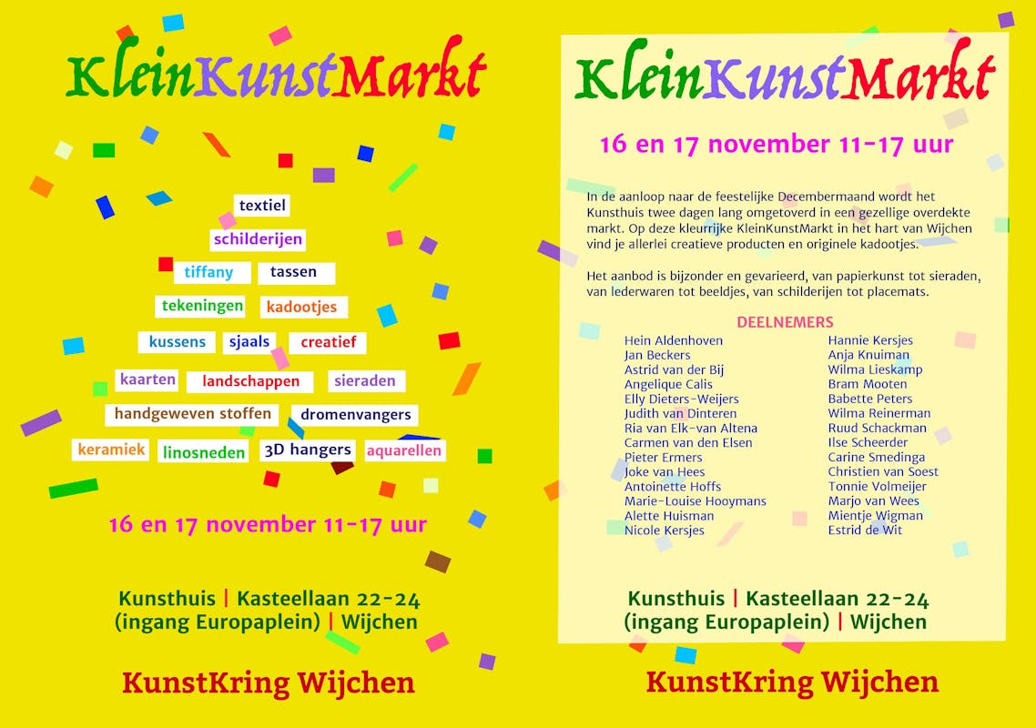 KLEIN KUNSTMARKT IN HET KUNSTHUIS. 16 en 17 november