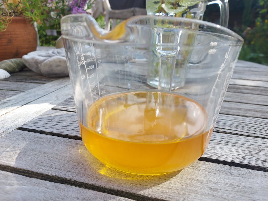 We maken calendula - goudsbloemen - zalf van zelfgemaakte goudsbloem olie, bijenwas en etherische olie.