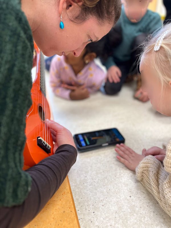 Al spelenderwijs wordt tijdens de les op professionele wijze de muzikale basis gelegd: het kind ervaart muziek in al zijn soorten, namelijk door zelf muziek te maken, door op muziek gedragen te worden, zelf te bewegen of door gewoon te luisteren. De band met je kind, het van elkaar genieten en samen spelen, staat voorop.