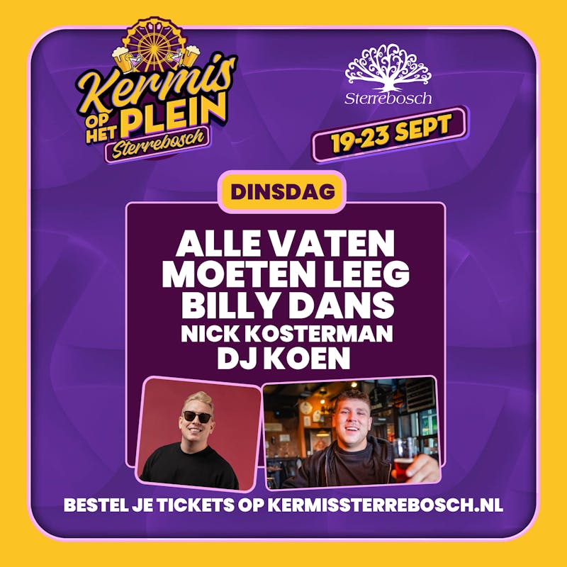 Op dinsdag sluit DJ Koen de kermis knallend af samen met Billy Dans, bekend van vele populaire hits. Daarnaast treedt de Wijchense artiest Nick Kosterman op.