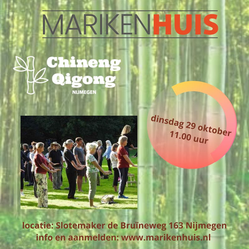 Op dinsdag 29 oktober om 11.00 uur biedt Heleen Kessels een workshop Chineng Qigong aan. Dat is een Chinese meditatieve bewegingsvorm met eenvoudige, zachte bewegingen. Het is een medische vorm van Qigong, waarbij ‘heel worden’ het belangrijkste doel is. De effecten zijn voelbaar op lichamelijk, mentaal en emotioneel gebied. Je kunt je letterlijk weer ‘heel’ of ‘één’ voelen.