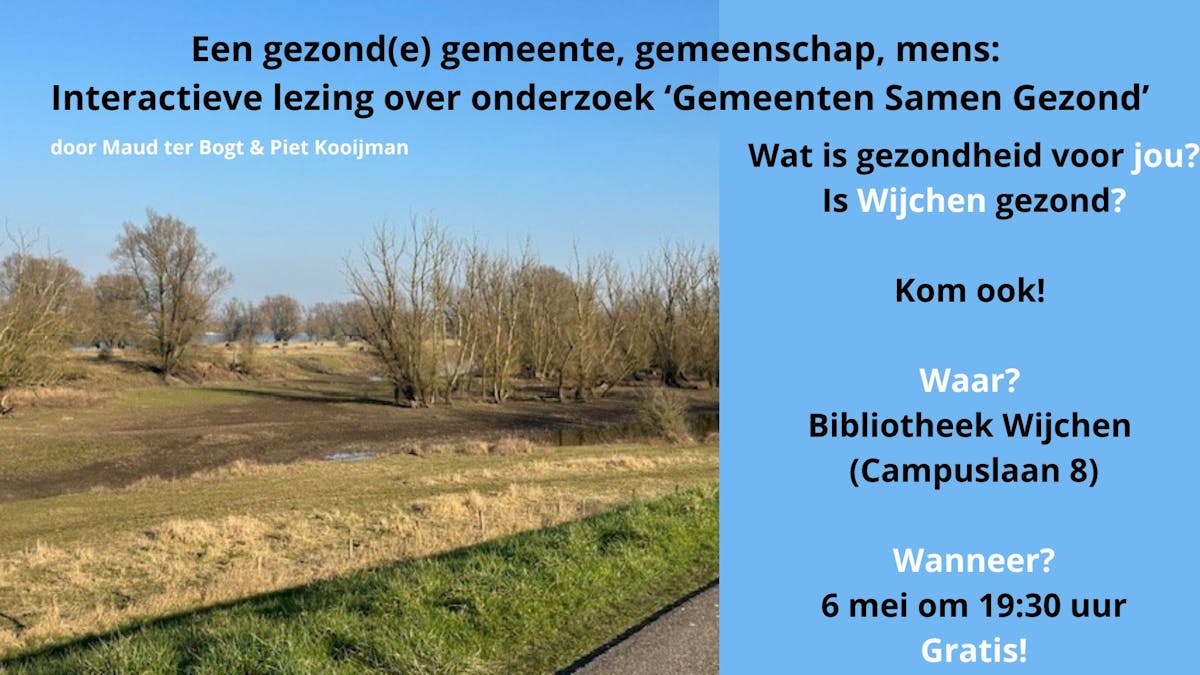 In Wijchen heeft een onderzoek plaatsgevonden over ‘Gemeenten Samen Gezond’. Deze gratis, interactieve lezing neemt je hierin mee. Je mag interactief meedenken en aanvullen. Bijvoorbeeld: Wat is gezond leven? De lezing is toegespitst op Wijchen en wordt gegeven door Piet Kooijman & Maud ter Bogt.