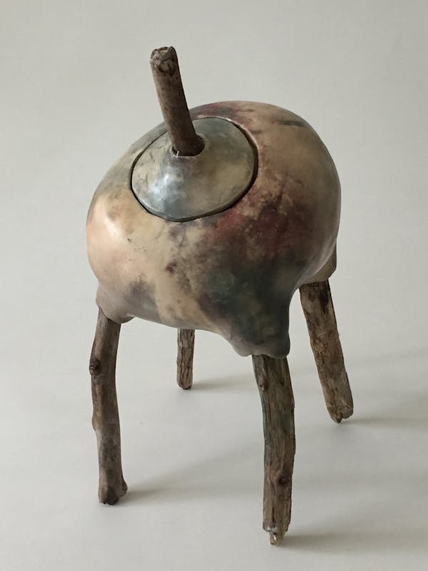 De keramiek van Ine van Gaalen krijgt kleur door de inwerking van vuur, rook en de materialen die mee-gestookt worden. De stenen die ze in haar leven verzamelde en de zin ”ik droomde dat ik langzaam leefde, langzamer dan de oudste steen” uit een gedicht van Vasalis brachten haar, na een korte corona-dip, geleidelijk weer op gang.