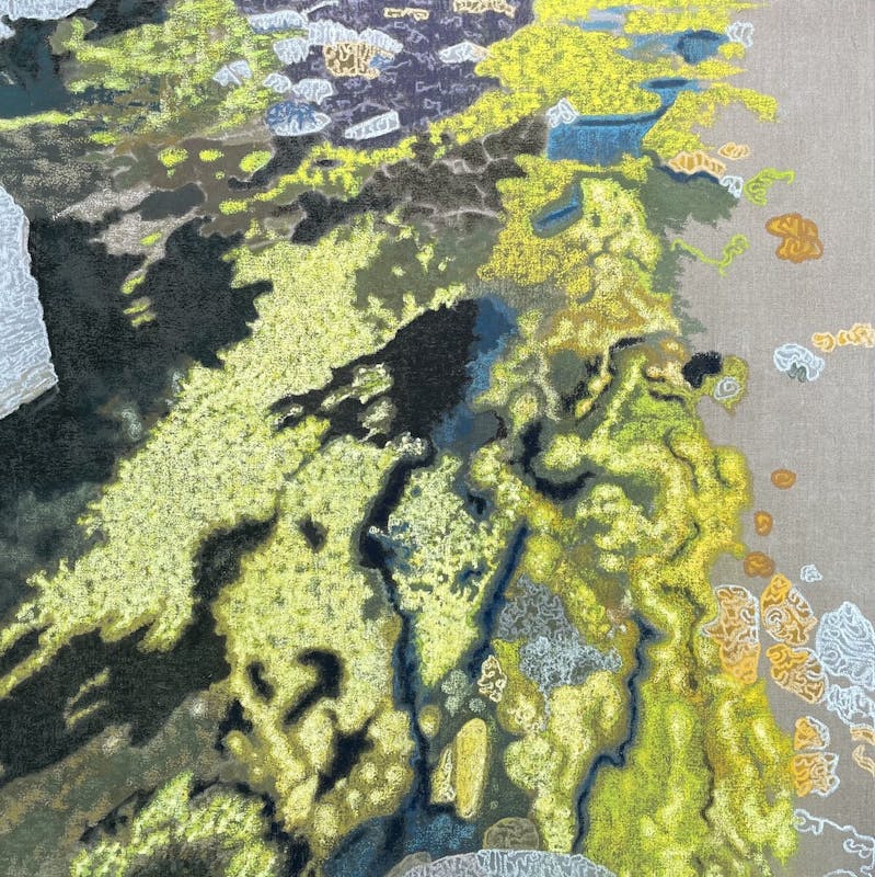 In de eerste expositie van het seizoen toont Noëlle Koppers in de Oude Victor in Batenburg recente tekeningen met pastelkrijt op linnen. Rivieren en meren, vijvers en vennen zijn voor haar terugkerende inspiratiebronnen.