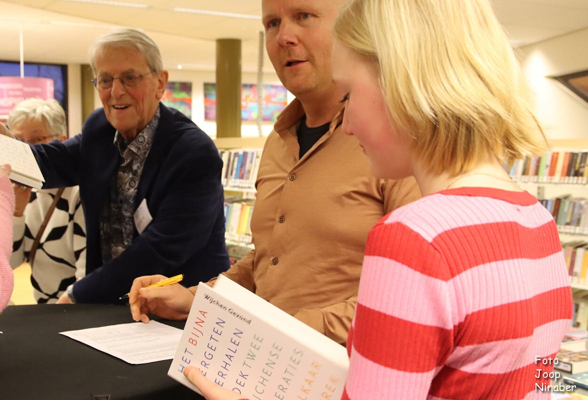 Maandag 23 januari vond in Theater 't Mozaïek een feestelijke presentatie plaats van ' Het bijna-vergeten-verhalen boek' . Het eerste exemplaar werd overhandigd aan burgemeester Renske Helmer- Englebert. Wethouder Bea Schouten gaf een passende inleiding. Er was muziek, dans en zang door o.a. leerlingen van Theaterschool Hakoena en enkele verhaaltjes werden voorgelezen. Alle deelnemers en veel gasten waren aanwezig in de volle theaterzaal.