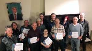Energiecoaches zijn vrijwilligers uit de gemeente Wijchen. De eerste twaalf vrijwilligers hebben de cursus tot energiecoach succesvol afgerond. Op de foto ziet u dat zij hun certificaat hebben gekregen.