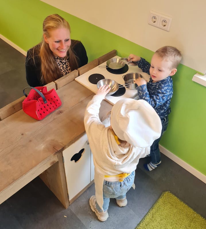 De peuteropvang biedt een veilige en inspirerende omgeving waarin kinderen zich kunnen thuis voelen. De locatie, omringd door dieren zoals konijnen en kippen, biedt zowel binnen als buiten voldoende ruimte om te spelen en te ontdekken. De prachtig ingerichte binnenruimte en de ruime buitenfaciliteiten zijn ontworpen om de zintuigen van de kinderen te prikkelen en hun nieuwsgierigheid te stimuleren.