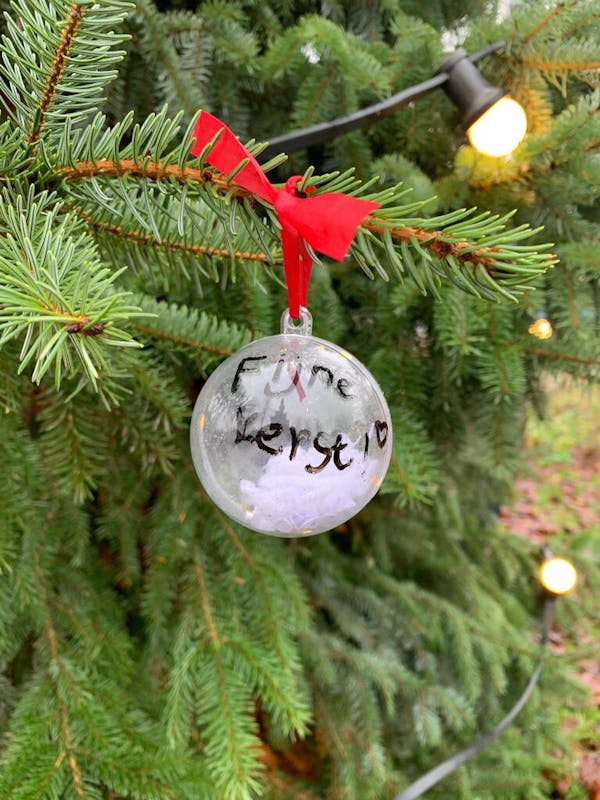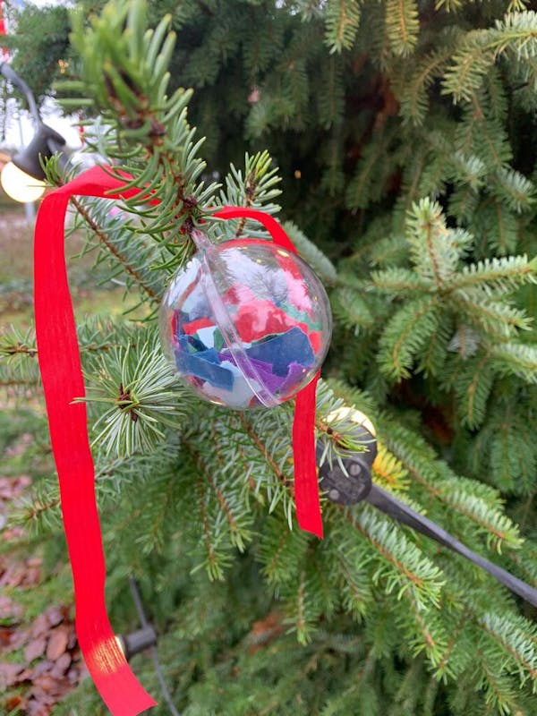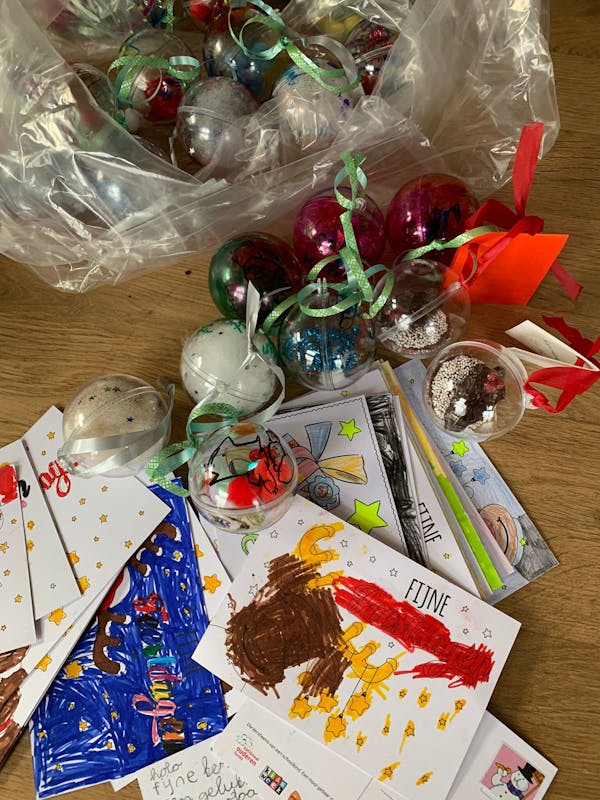 Op de doorzichtige kerstballen, uitgedeeld door de dorpsondersteuners Els en Niny, hebben ze hun creativiteit kunnen loslaten.