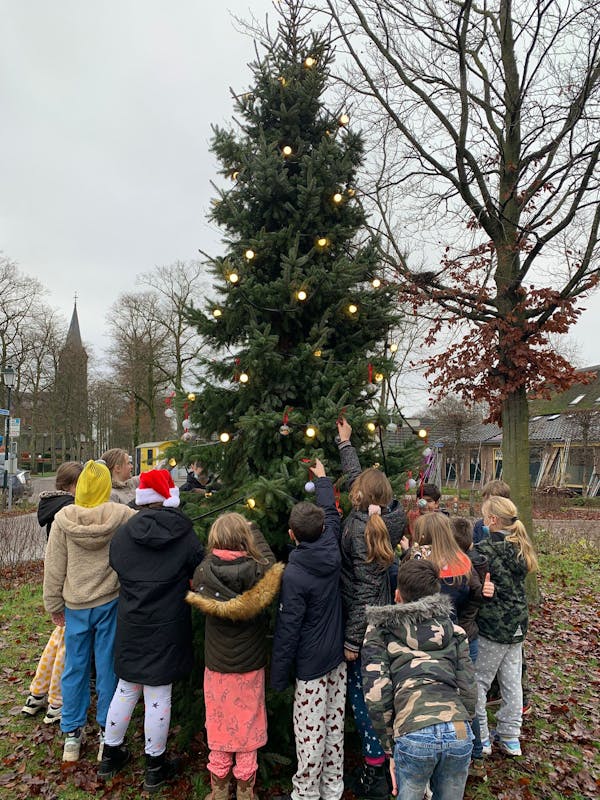 Ondanks dat, hebben de basisschoolkinderen afgelopen vrijdag toch nog de tijd gevonden om de dorpskerstboom te versieren.