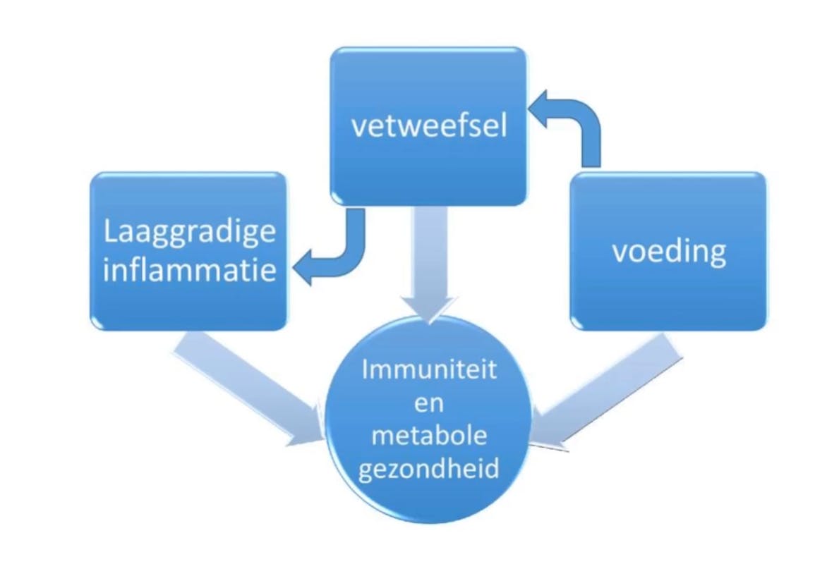 Ons immuunsysteem is erop ingericht om ziekteverwekkers aan te vallen en te vernietigen. Zodra er sprake is van chronische laaggradige inflammatie staat ook het immuunsysteem constant onder druk. Daardoor raakt dat systeem overbelast en kan het minder goed andere ontstekingen of ziekteverwekkers, zoals COVID-19, bestrijden. Ook heeft vetweefsel direct invloed op het immuunsysteem, bijvoorbeeld door verhoogde afgifte van het hormoon leptine. Ten slotte kan ons voedsel direct en indirect aangrijpen op de immuunhuishouding. Dat laatste is natuurlijk ook goed nieuws, want dat betekent ook dat we vrij snel effect mogen verwachten als we kiezen voor gezonde voeding.