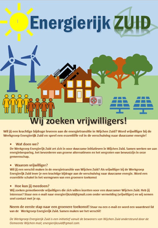 Ben jij gepassioneerd over duurzaamheid en wil je een actieve rol spelen in de energietransitie van Wijchen Zuid? Sluit je dan aan bij de Werkgroep Energierijk Zuid als vrijwilliger!