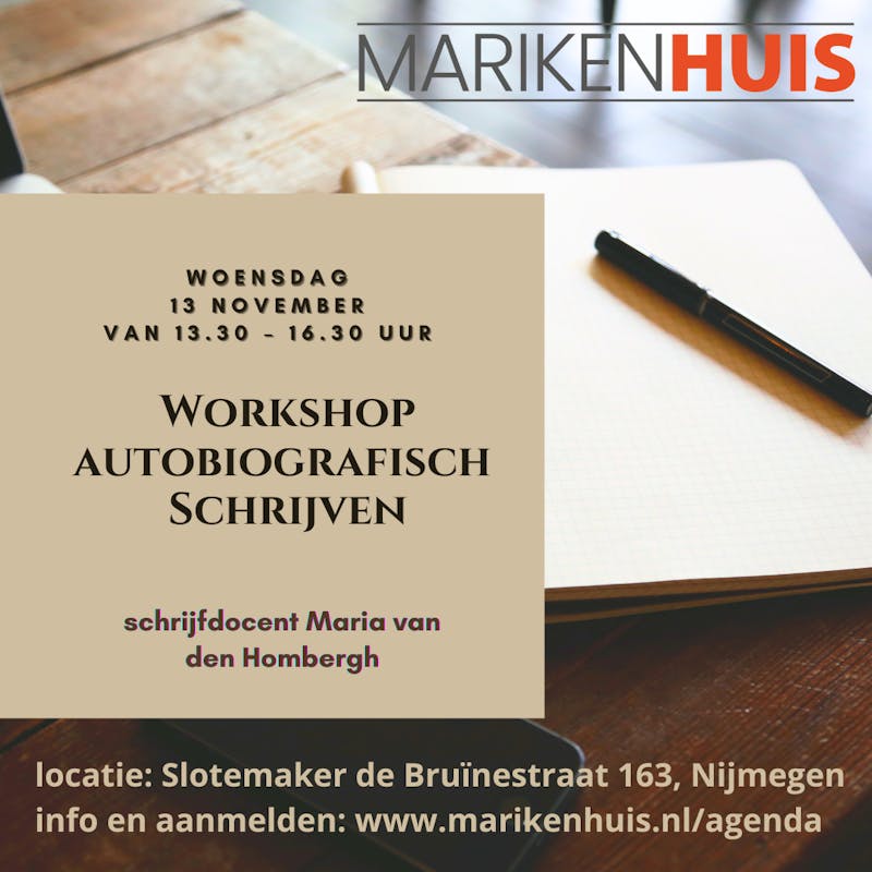 Wie creatief bezig wil zijn kan op woensdagmiddag 13 november om 13.30 uur deelnemen aan de workshop schrijven in het Marikenhuis, Slotemaker de Bruïneweg 163 Nijmegen.