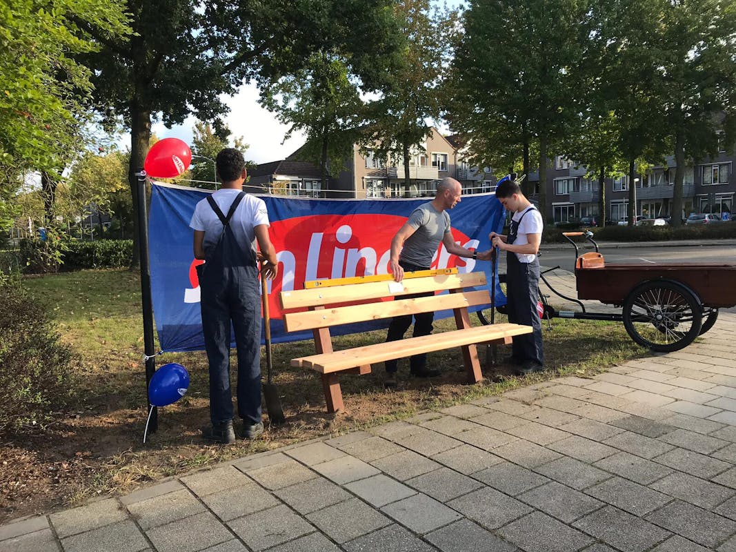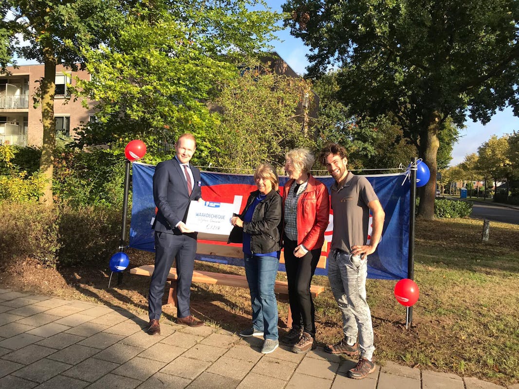 Zaterdag 28 september de opening van het eerste bankje van Jan Linders Wijchen vanuit het ‘Jan Linders project'‘ voor Wijchen Gezond én de uitreiking van de cheque voor de opbrengst van het eerste halfjaar: €1.218,00 dat zijn 6 bankjes voor de wijk Achterlo in Wijchen.