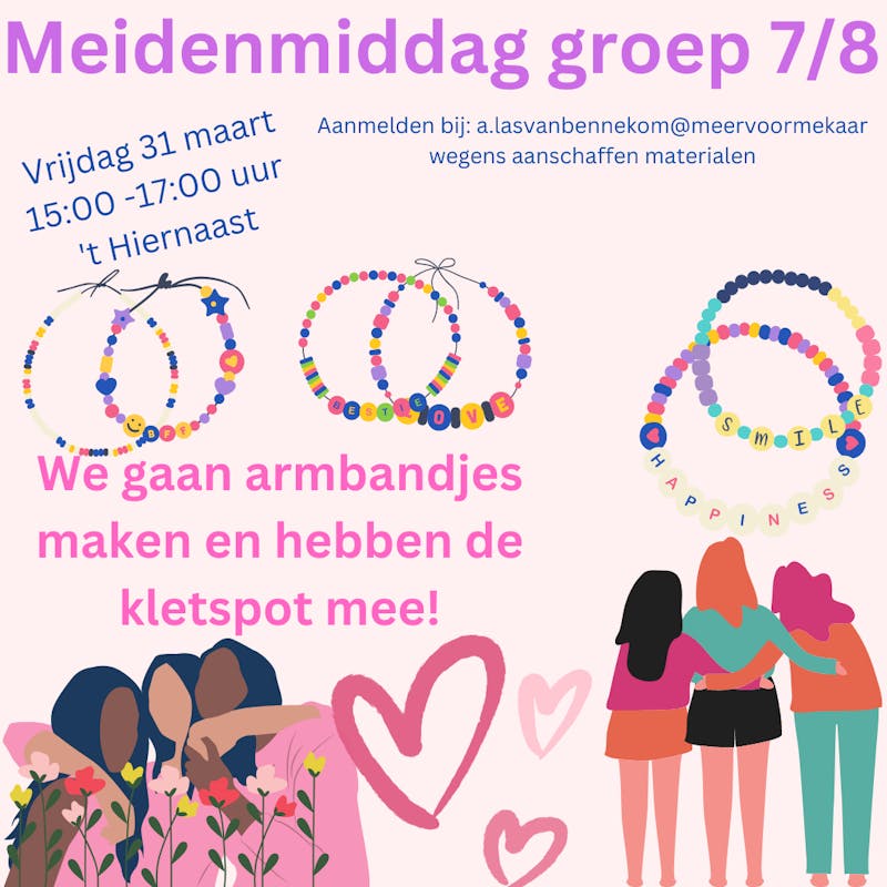 Vrijdag 31 maart organiseert het jongerenwerk weer een meidenmiddag voor meiden die in groep 7/8 zitten van de basisschool.