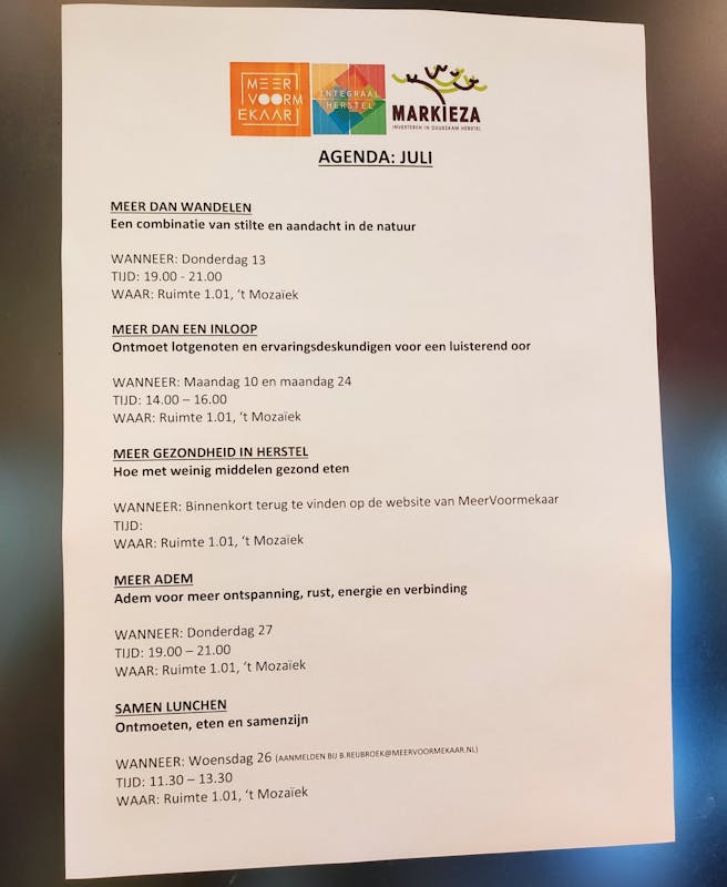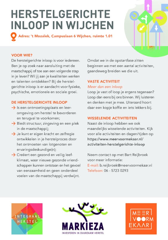 Voor meer informatie over bezoek de website van MeerVoormekaar: Herstelgerichte Inloop