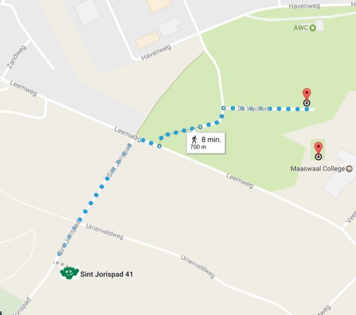 Vanaf hier is het plus minus 8 tot 10 minuten lopen naar de Blije Dries