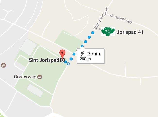 Vanaf hier is het plus minus 3 tot 5 minuten lopen naar de Blije Dries.