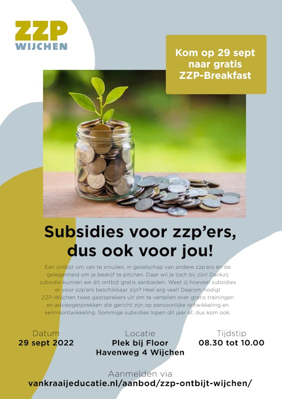 Dankzij subsidie kunnen we dit ontbijt gratis aanbieden. Weet jij hoeveel subsidies er voor zzp’ers beschikbaar zijn? Heel erg veel! Daarom nodigt